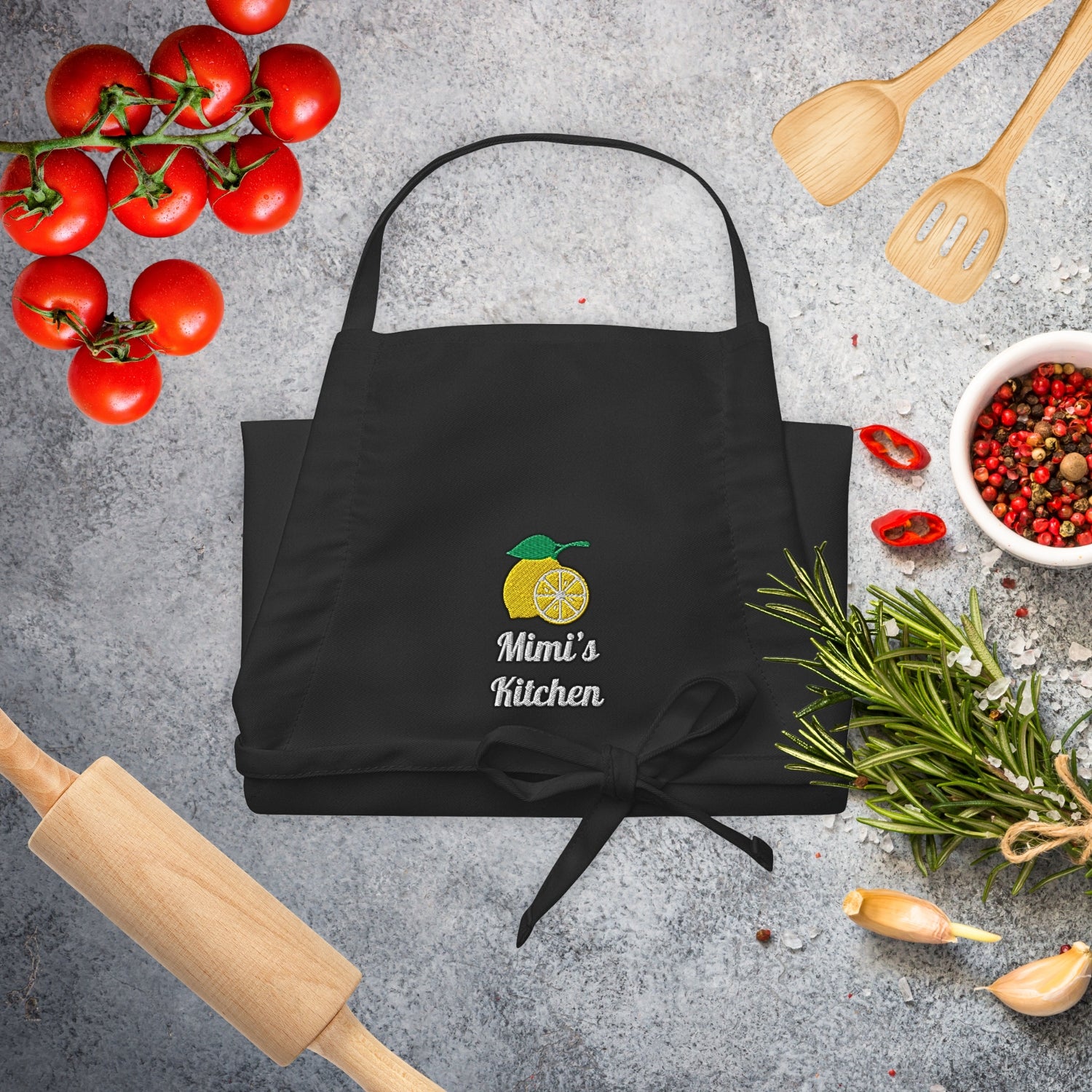The perfect gift for any home chef! Personalize this apron with a name, your choice of font, and a cute icon above the text. Whether it's for Mother’s Day, a birthday, or just because—they’ll love cooking in style.
