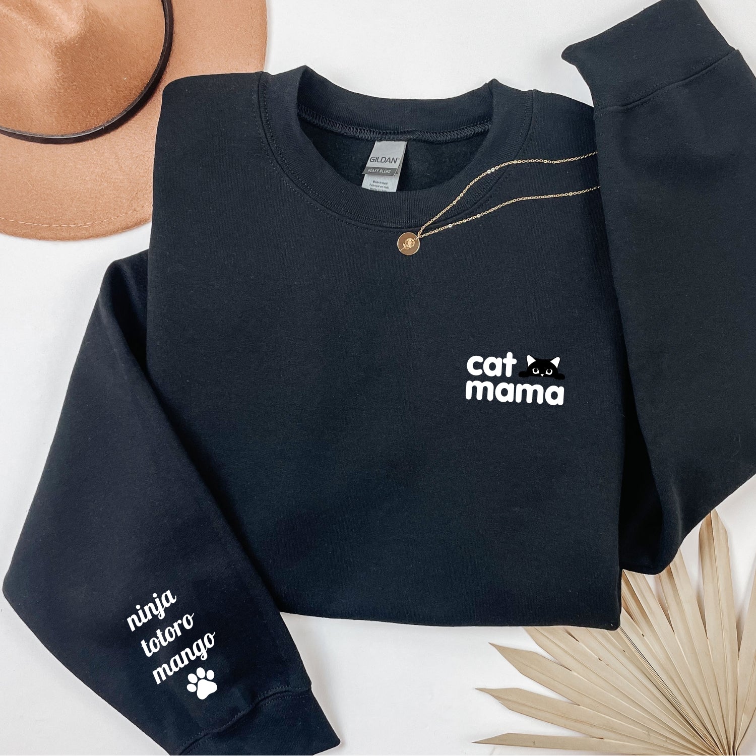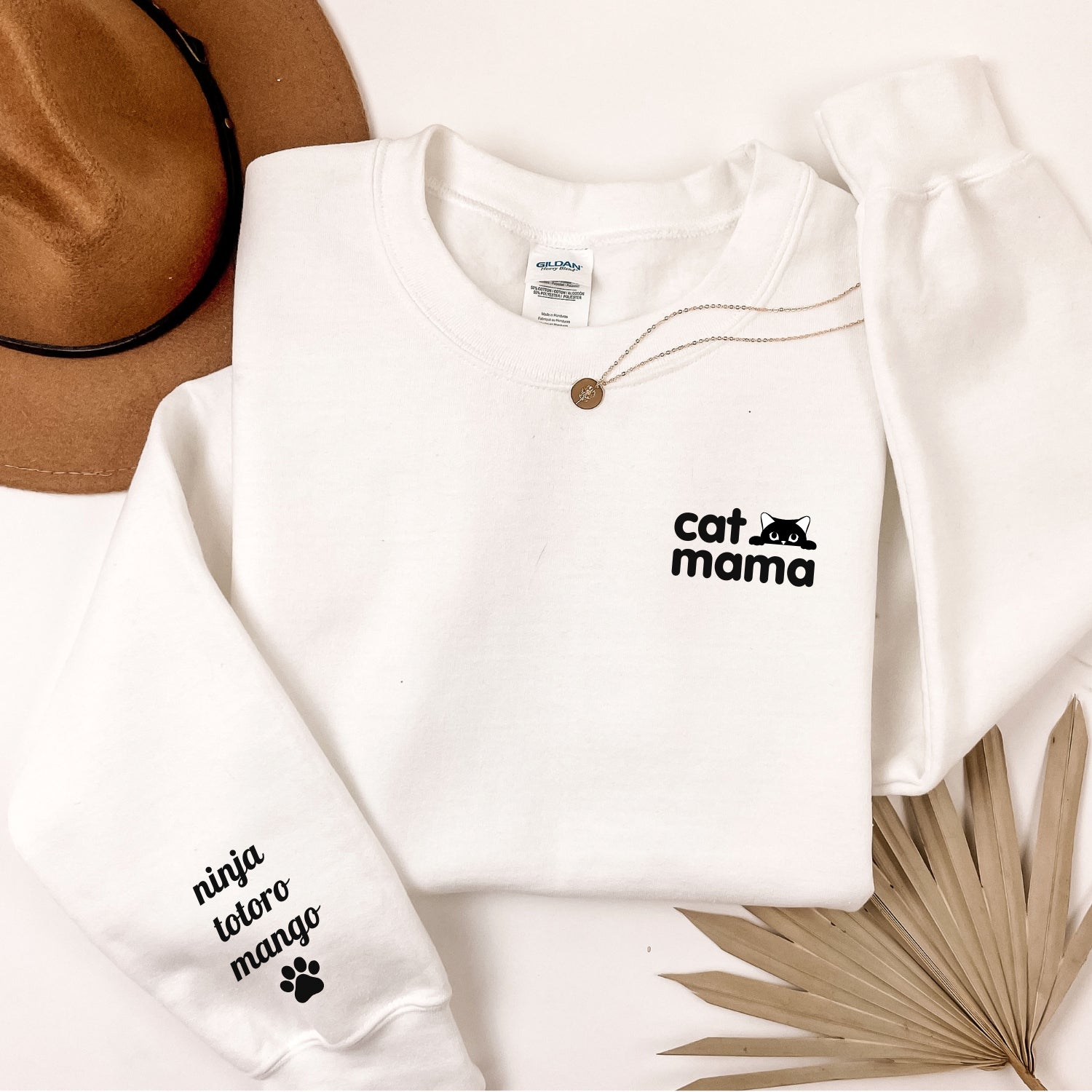 Show off your feline pride with our cozy Cat Mama embroidered sweatshirt, complete with personalized embroidery on the right sleeve featuring your cat’s names! 🐾